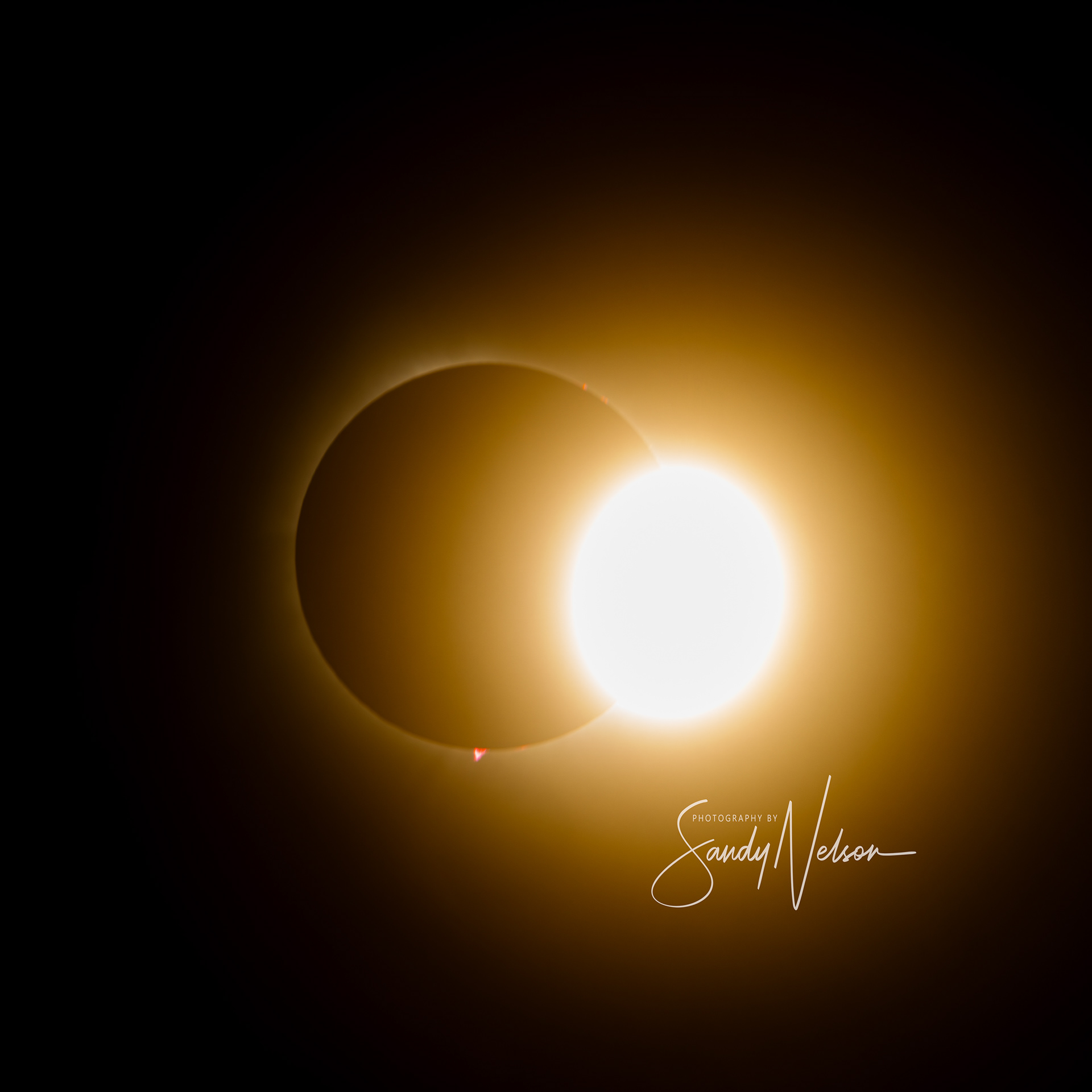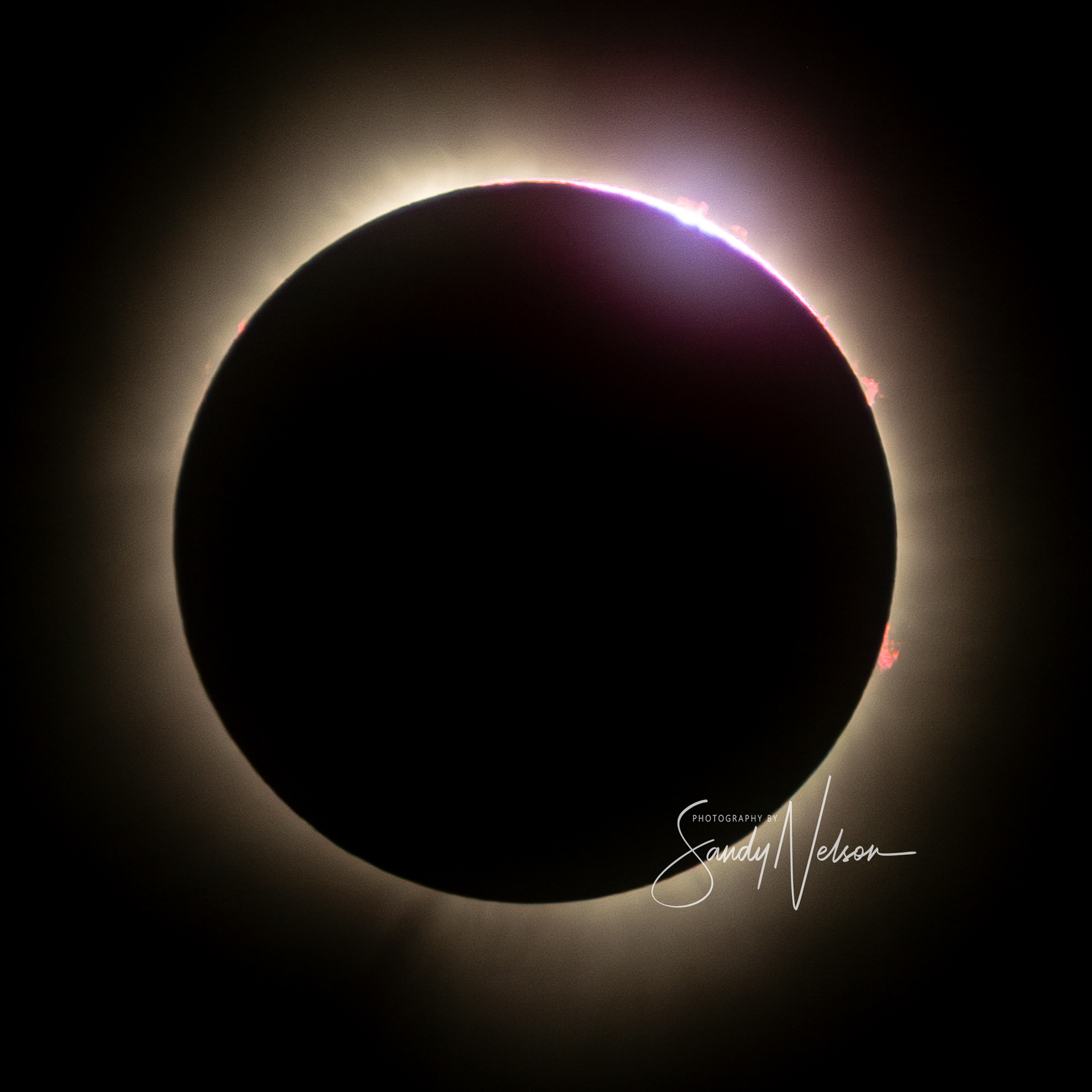 The second diamond ring was not exactly opposite where the first one appeared, which has me confused, but it has something to do with the path of the moon not being straight. I'll think about it and update with an explanation if I can.