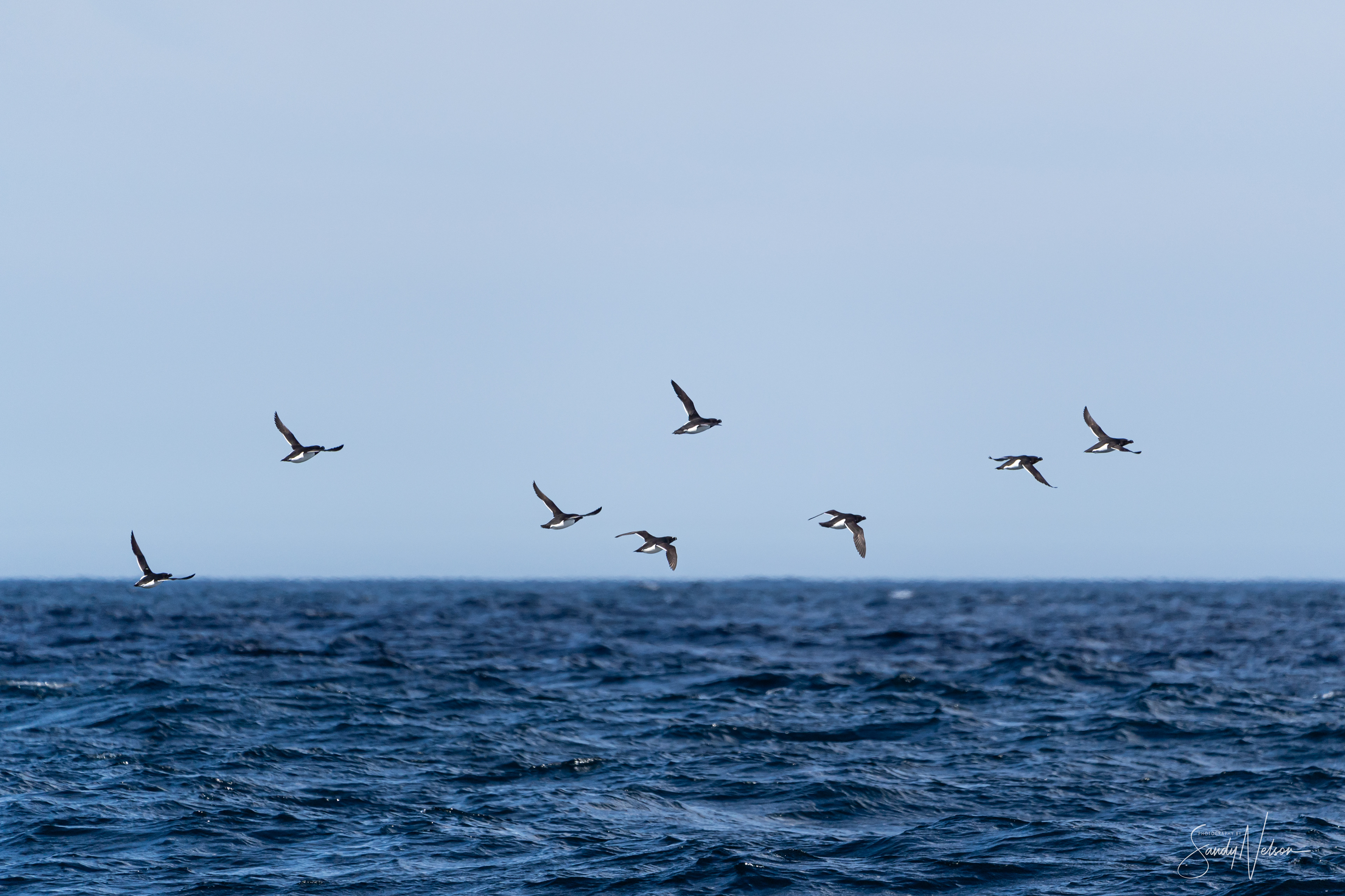 A Flock of Razorbills flying off